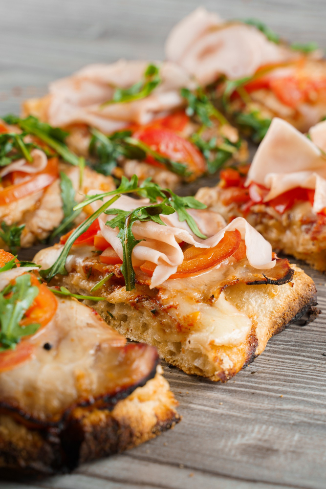zöldségek, paradicsom, sajt (növényi eredetű), ruccola