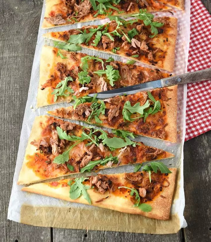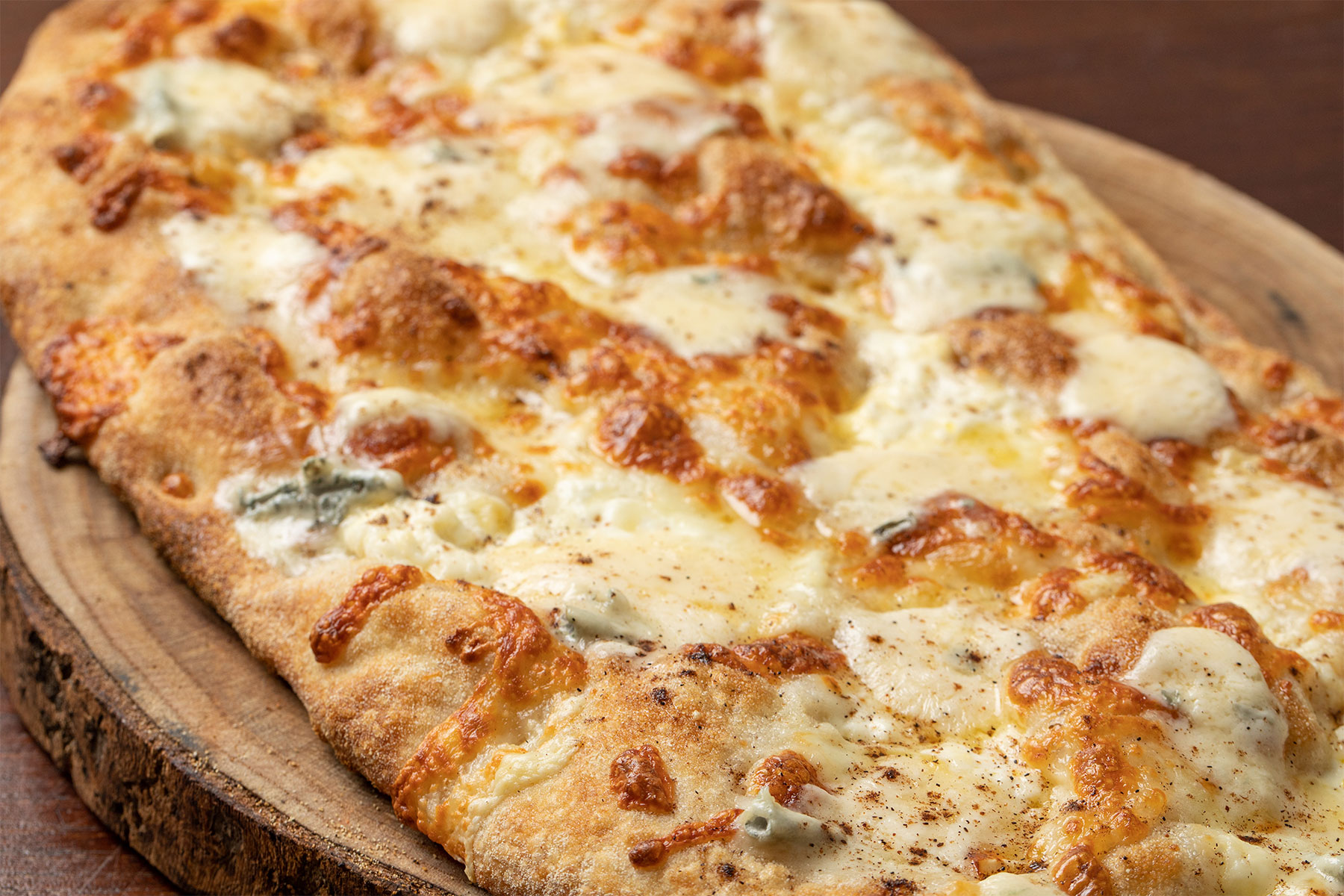 4 fajta sajttal tálálva, paradicsom, ruccola