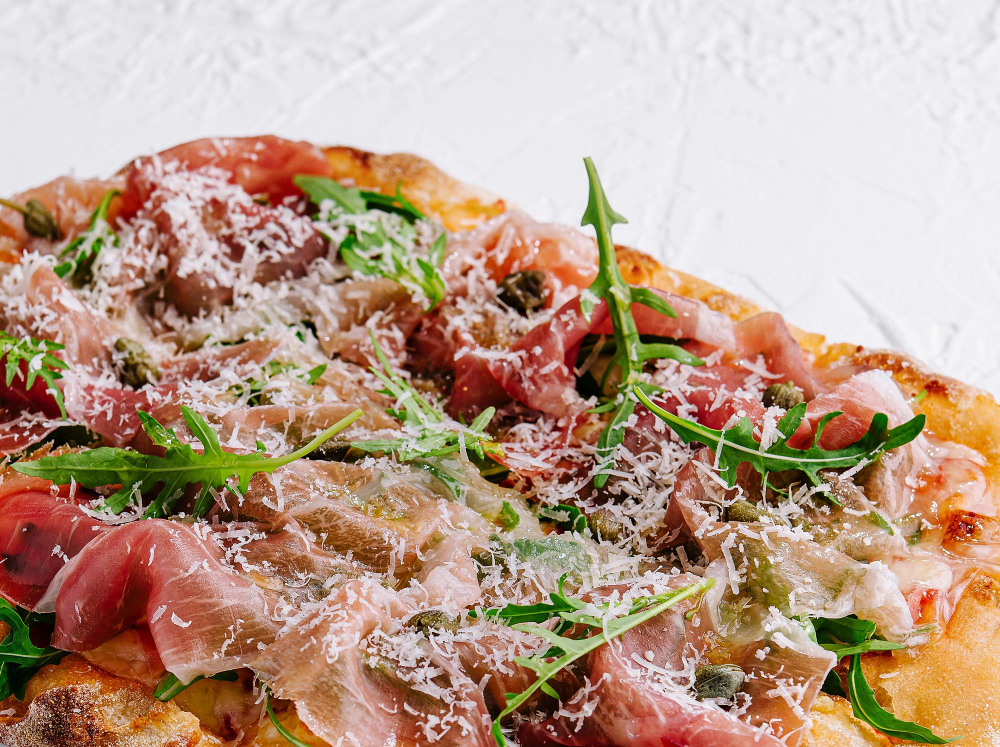 prosciutto crudo, paradicsom, sajt, ruccola